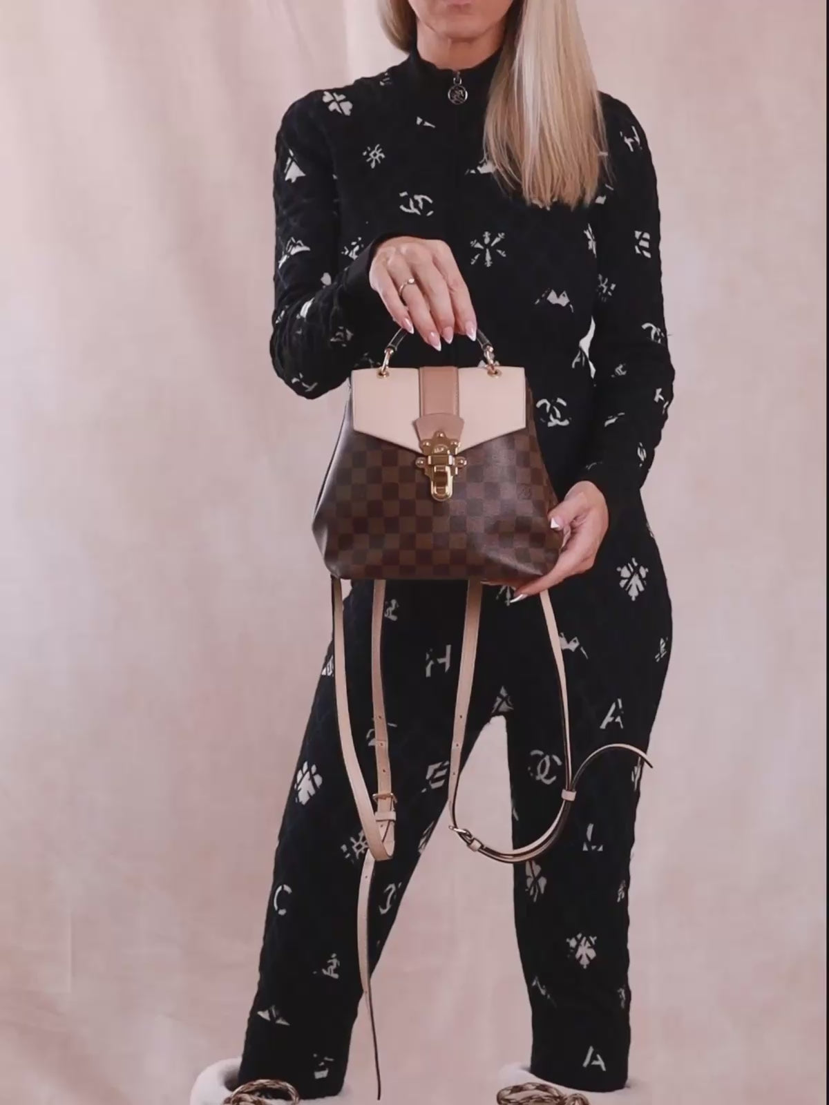 Vivi il puro lusso con l'esclusivo zaino LOUIS VUITTON Palm Springs PM Masters . Dalla leggendaria collezione Masters , ispirata al mondo dell'arte con il celebre capolavoro della " Gioconda " di DA VINCI . Realizzato artigianalmente in pelle di alta qualità con dettagli esclusivi, come una stampa interna e un pendente a forma di coniglio.