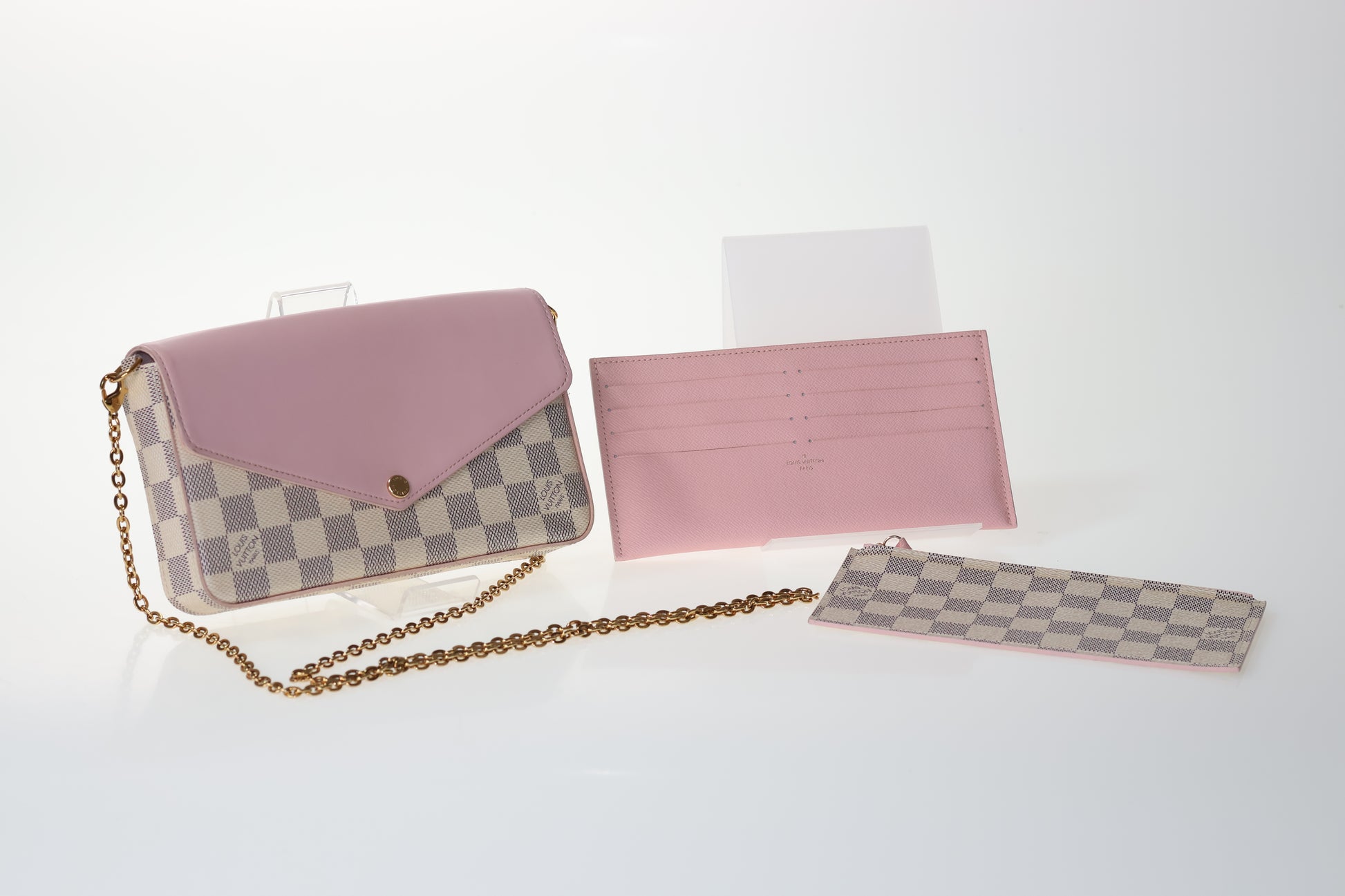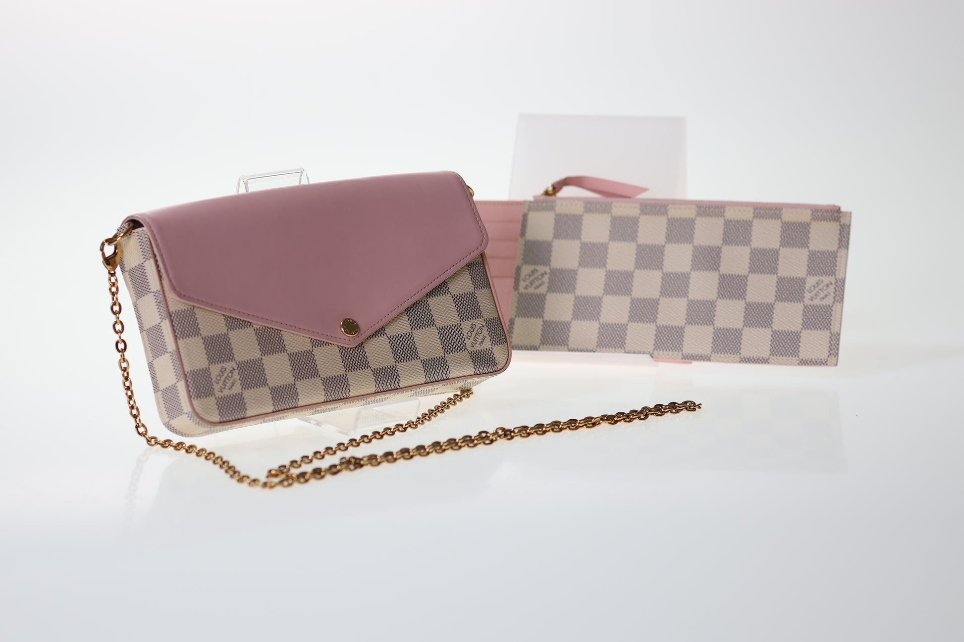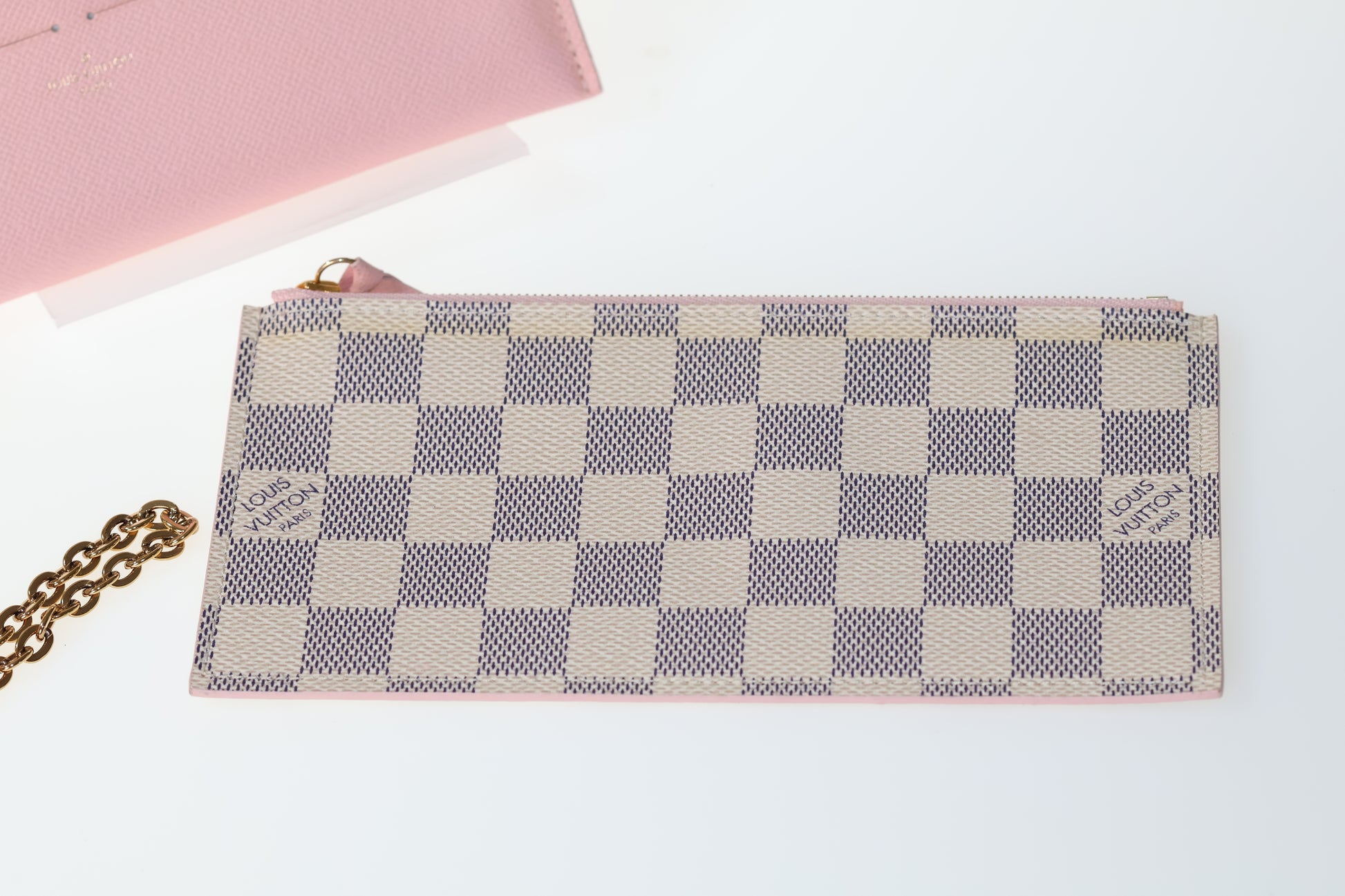 Entdecke die perfekte Tasche für jeden Anlass mit der Louis Vuitton Felicie Damier Azur Rose! Diese kleine, minimalistische Tasche in edlem Rot ist nicht nur ein echter Hingucker, sondern bietet auch praktischen Stauraum mit zwei Innenmäppchen. Verleihe deinem Look einen Hauch von Luxus und Funktionalität mit dieser hochwertigen Tasche.