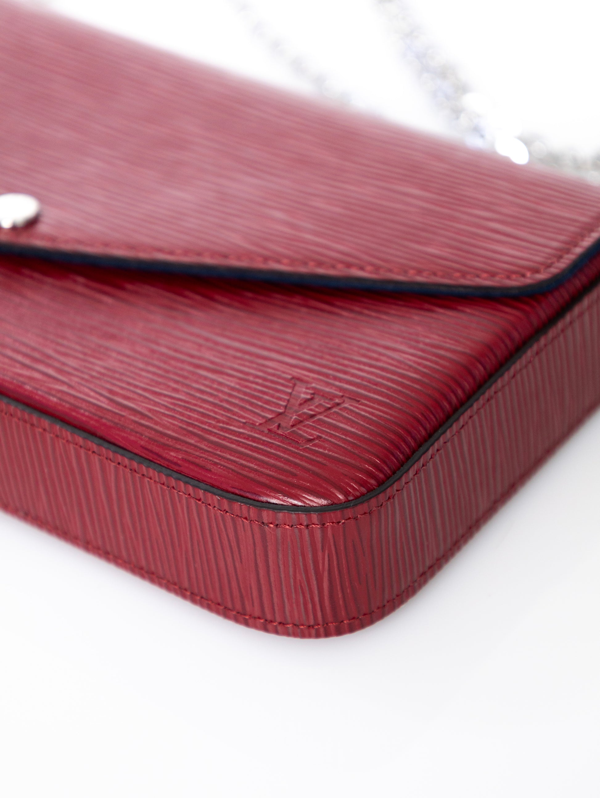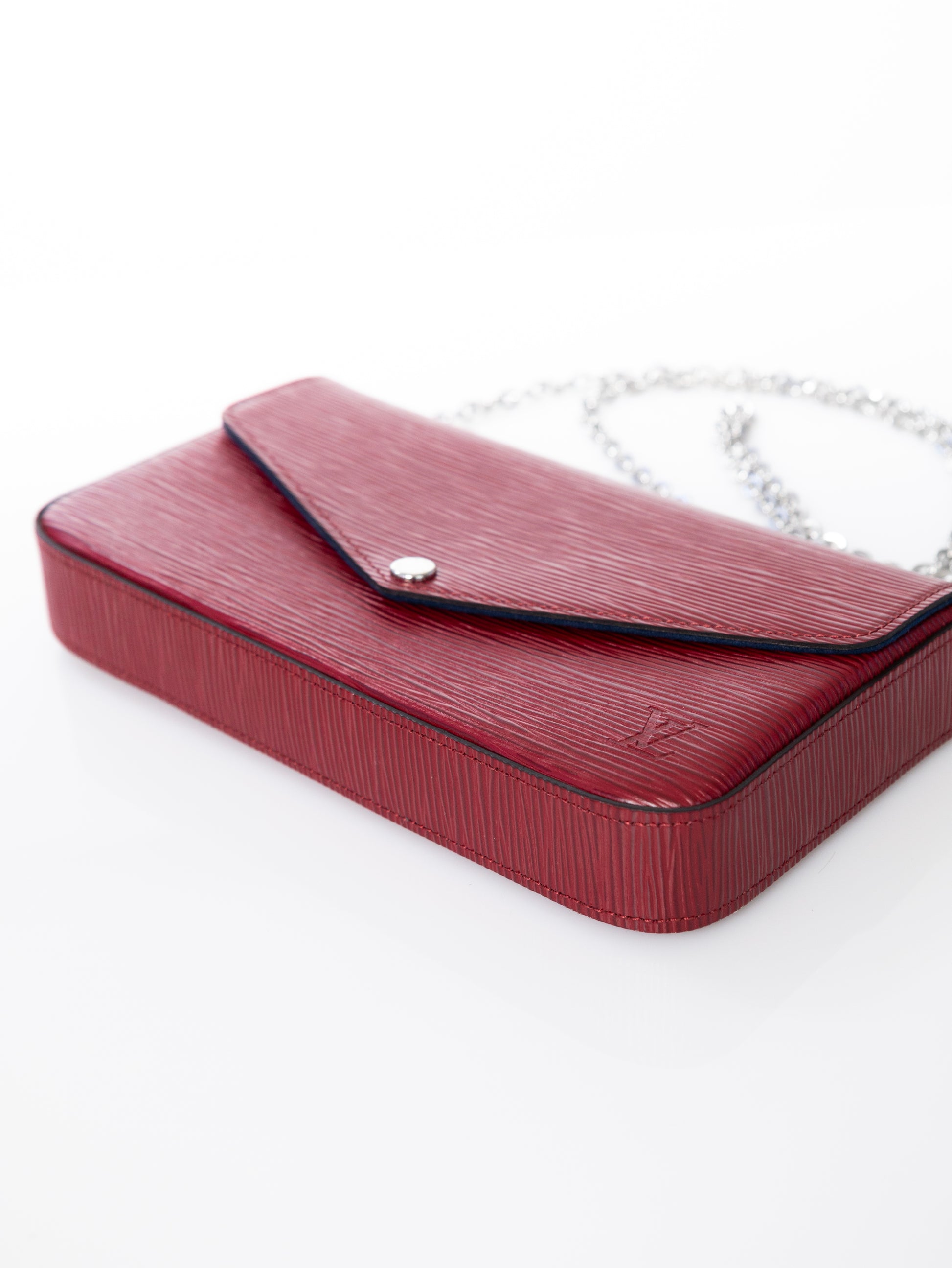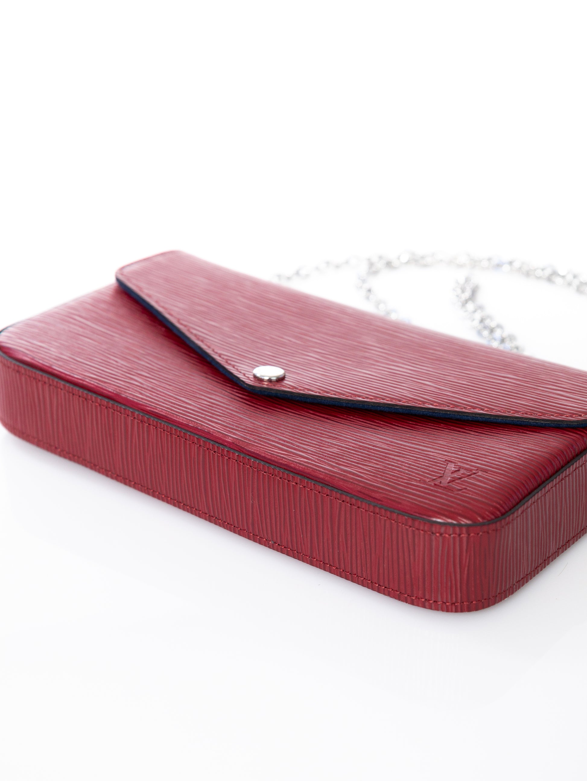 Entdecke die perfekte Tasche für jeden Anlass mit der Louis Vuitton Felicie Epi Cherry M68629! Diese kleine, minimalistische Tasche in edlem Rot ist nicht nur ein echter Hingucker, sondern bietet auch praktischen Stauraum mit zwei Innenmäppchen. Verleihe deinem Look einen Hauch von Luxus und Funktionalität mit dieser hochwertigen Tasche.