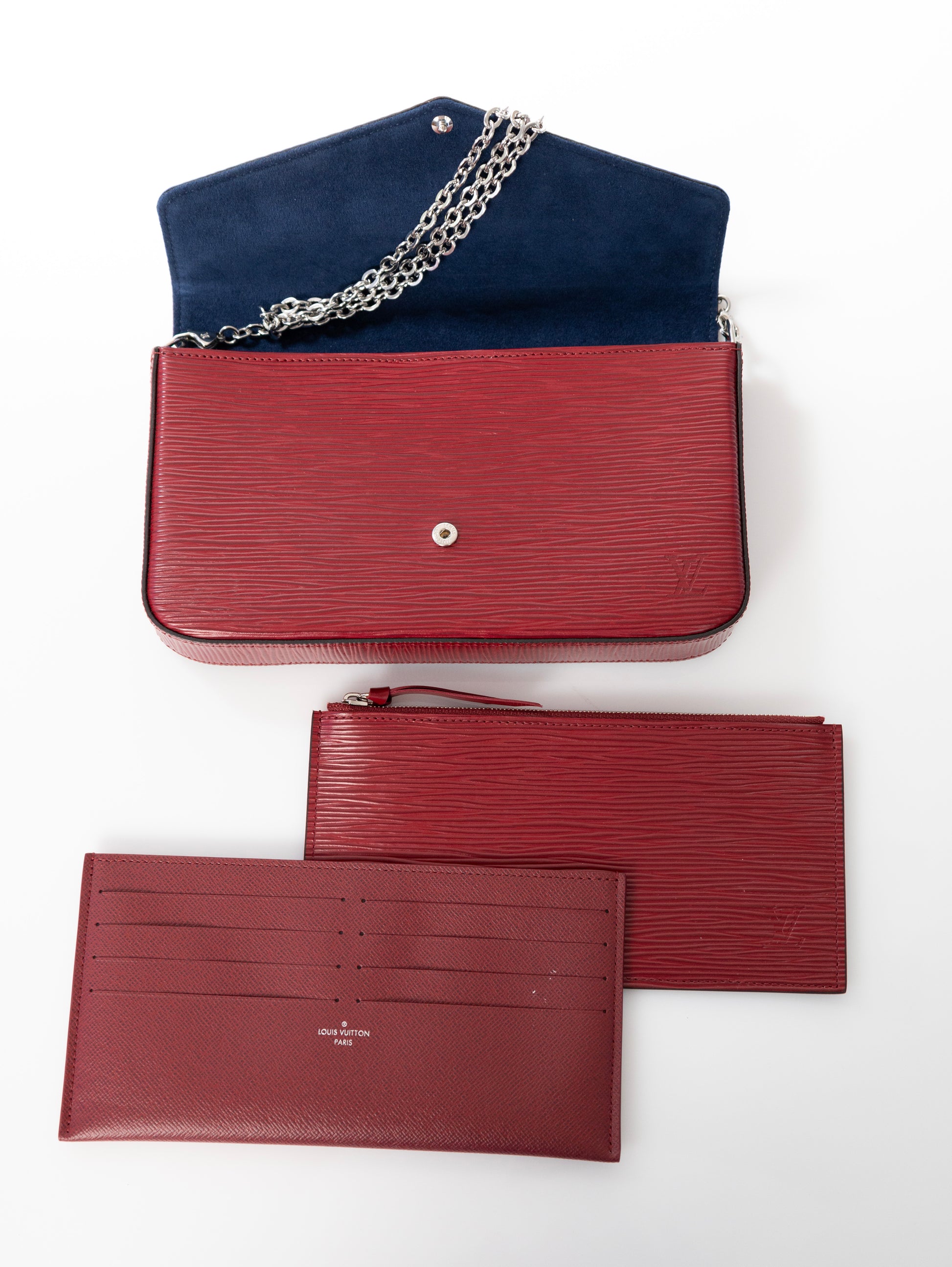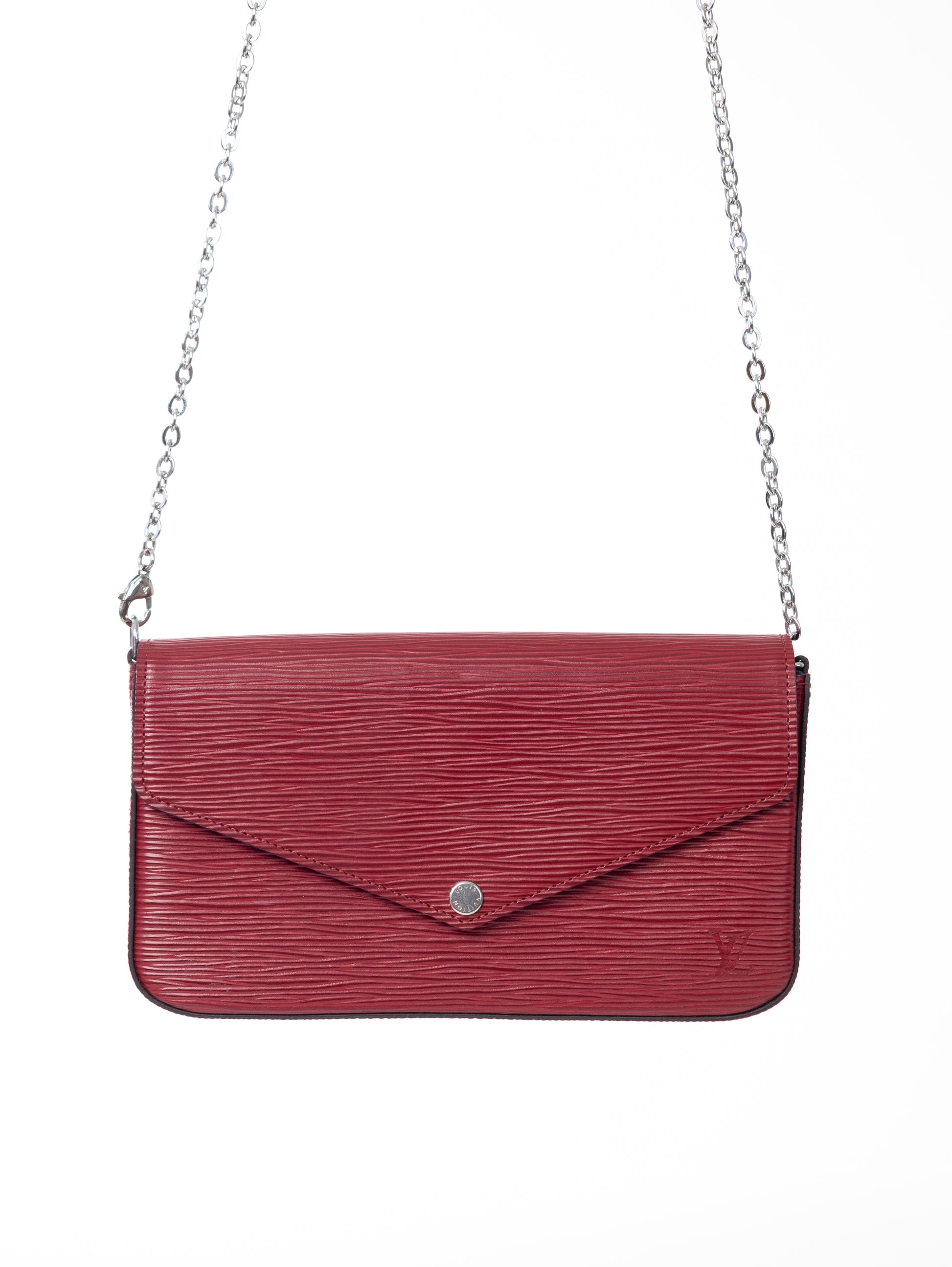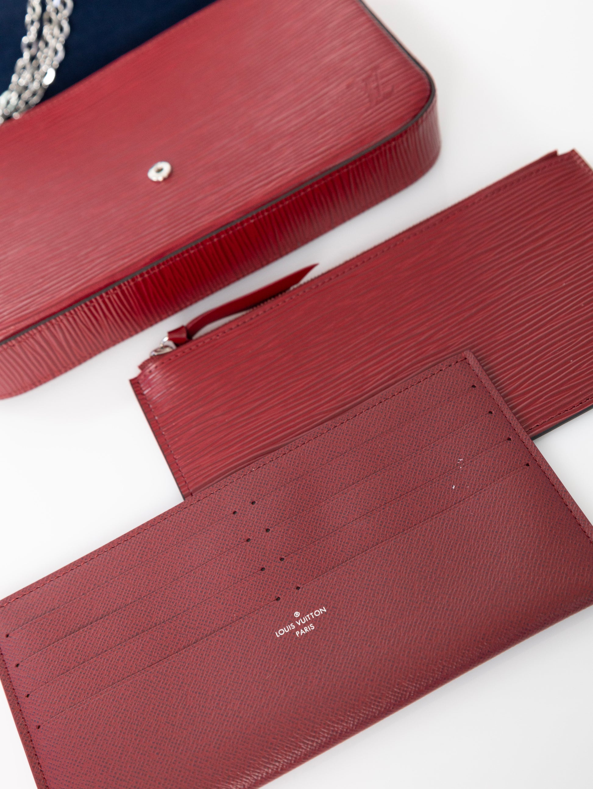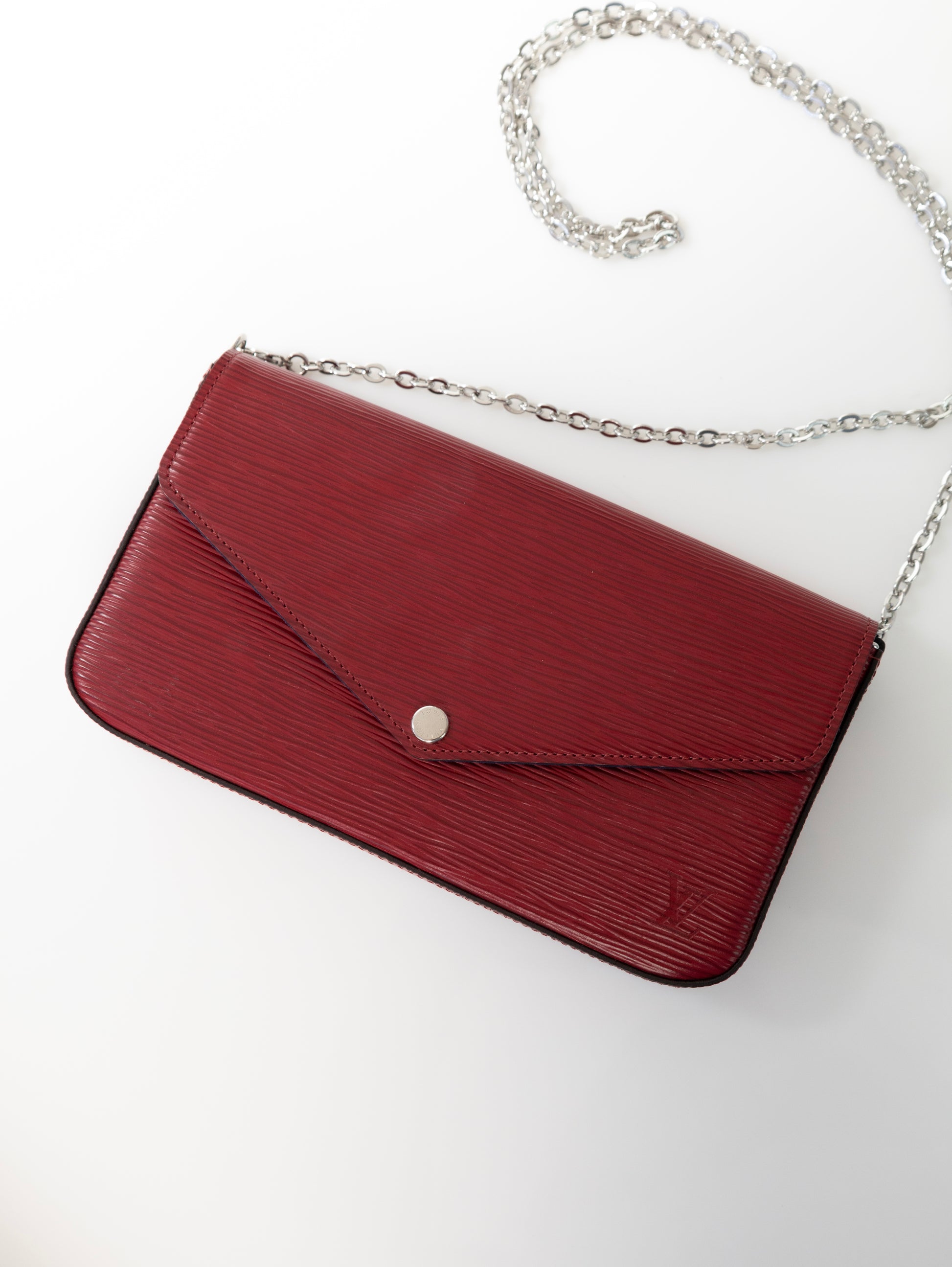 Entdecke die perfekte Tasche für jeden Anlass mit der Louis Vuitton Felicie Epi Cherry M68629! Diese kleine, minimalistische Tasche in edlem Rot ist nicht nur ein echter Hingucker, sondern bietet auch praktischen Stauraum mit zwei Innenmäppchen. Verleihe deinem Look einen Hauch von Luxus und Funktionalität mit dieser hochwertigen Tasche.