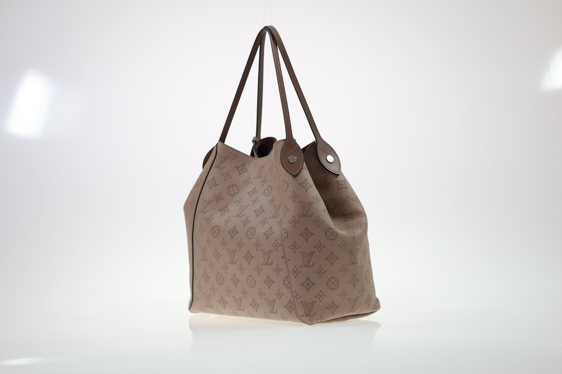 Entdecken Sie die LOUIS VUITTON Hina MM – eine Meisterleistung aus luxuriösem Mahina-Leder in warmem Taupe. Das charakteristische perforierte Monogramm-Design setzt diese Tasche elegant von der klassischen Neverfull ab. Mit großzügigen Dimensionen von 46 x 29,5 x 17 cm fasst sie mühelos Ihre täglichen Essentials. Das Modell präsentiert sich in exzellentem Zustand mit nur minimalen Gebrauchsspuren – der Innenraum bleibt makellos. Der praktische Magnetverschluss und die flexible Faltbarkeit machen sie zur idealen Begleiterin für jeden Moment. Ob als Schultertasche oder in der Hand getragen – diese zeitlose Investition verbindet französische Handwerkskunst mit unverwechselbarem Stil.